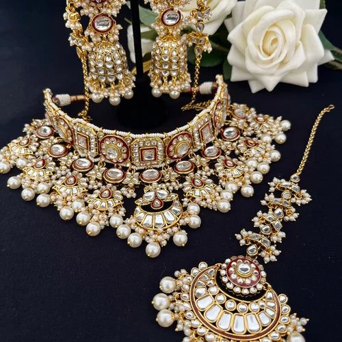 Antique Gold Indian Bangles Set: Pearl & Stone Kade, Handmade
